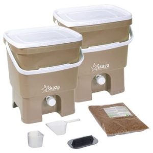 El Contenedor Skaza de compostaje de 16 litros (Ver en Amazon), es una compostera de cocina diseñada para almacenar 16 litros de residuos orgánicos y con la función de transformarlos en abono natural rico en nutrientes para tus plantas y jardines.